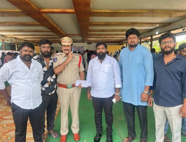 Today, at the invitation of Dear Brother ASI Idris Ali Garu of Dammaiguda PS, a Blood Donation Camp was held at VNR Gardens, Nacharam, DSP Padmaja Madam Garu, ASI Idris Ali Garu, WCC National President Rahumudri Peter Naidu Garu, WCC National Vice President Paladugu Vijay Kumar Garu, Wcc National General Secretary Zephaniah Garu, and several others participated in this noble event.